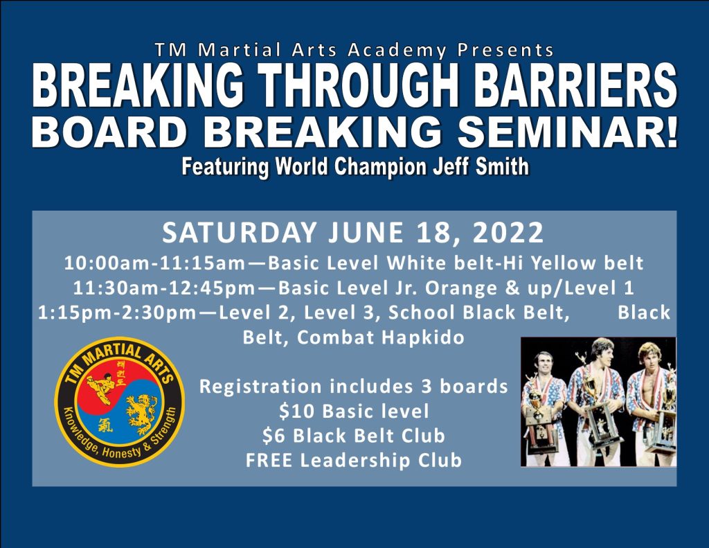 June 18 – “Breaking Through Barriers” Board-Breaking Seminar, featuring GM Jeff Smith!
