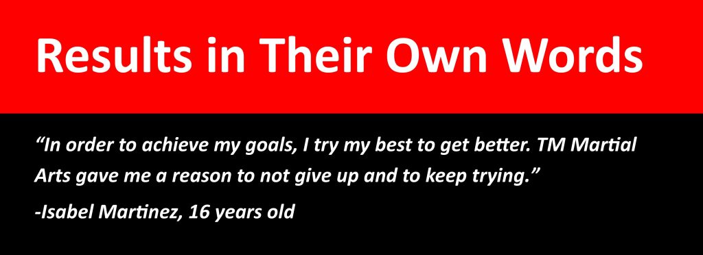 Martial Arts students learn how to achieve big, long-term goals by setting smaller goals and working toward them in succession. This process becomes a habit of mapping a path and hitting benchmarks on the way to long-term ambitions.
