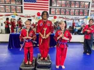 This month, TM Martial Arts Academy hosted a tournament for students to compete in 3 categories: Forms, Weapons, and Board Breaking. Students practiced extra hours and focused on sharpening their skills before competition day. We would like to recognize these students for maintaining a positive outlook throughout this experience. We are so proud of them!